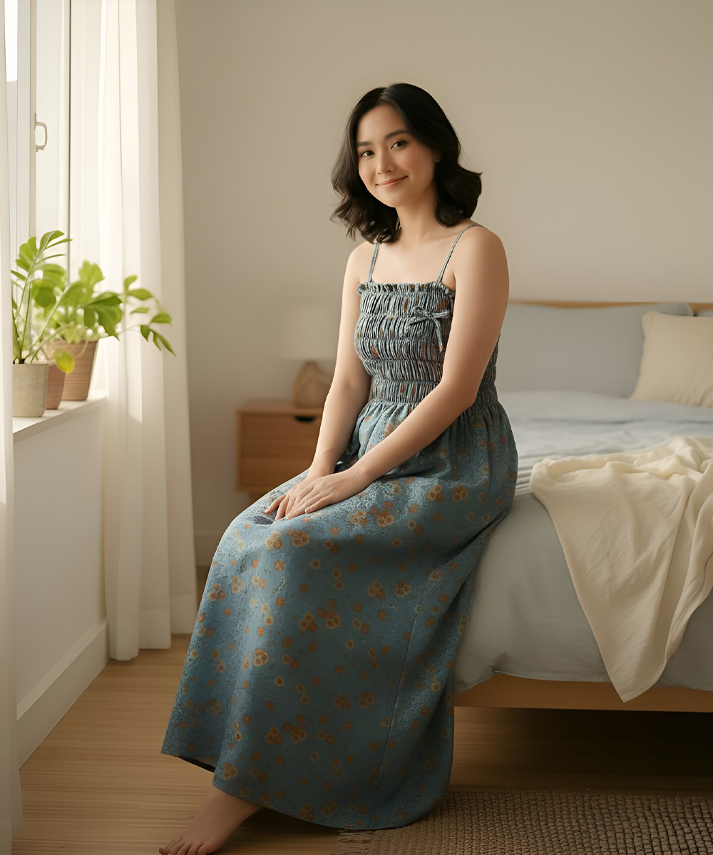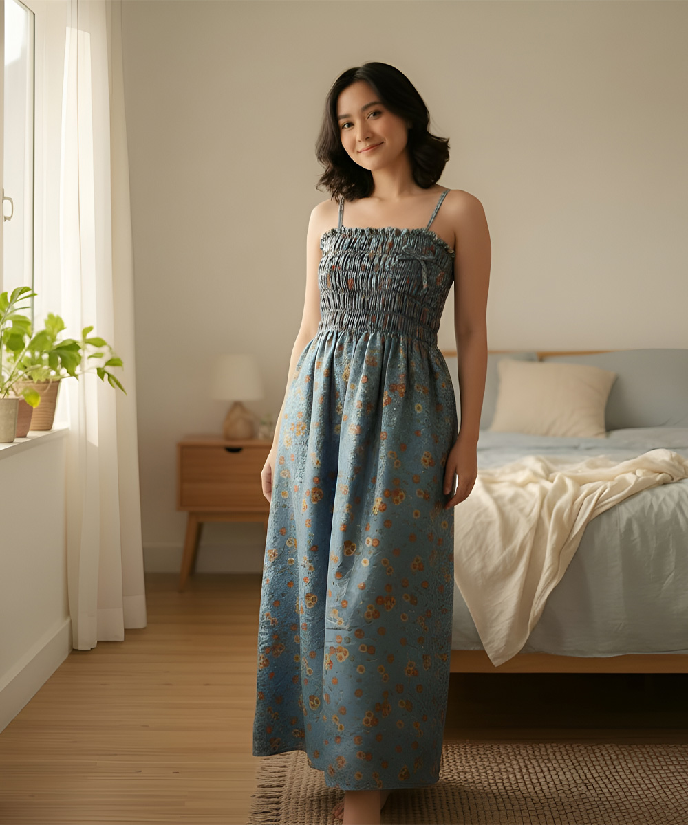 Cocok dipakai untuk bersantai di rumah, jalan santai, atau tidur malam. Daster Smok Tali bikin tampilan tetap rapi tanpa mengorbankan kenyamanan.
